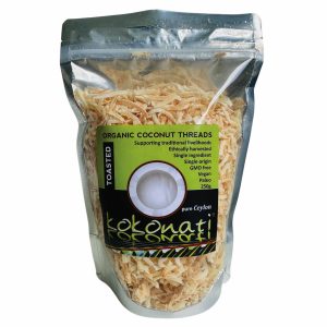 Storage Keep airtight in the pantry, away from sunlight and damp. Use a dry spoon to scoop out. Use within 3-4 months from opening. With a best before of two years from the manufacture date, coconut threads remain safe to use for even longer periods as long as it is stored with minimal exposure to light, air, and moisture. This is why Kokonati coconut thread is packed at the origin, in the very plantations the coconuts are harvested from, to seal the freshness and reduce exposure from day one.